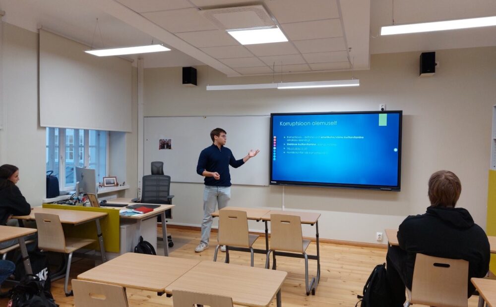 Perioodi viimasel päeval kohtusid 12.M klassi õpilased meie vilistlase Hugo Juurikuga, kes õpib Tartu Ülikoolis riigiteaduste erialal. Teemaks oli „Korruptsioonist ja selle mõistmisest“.
