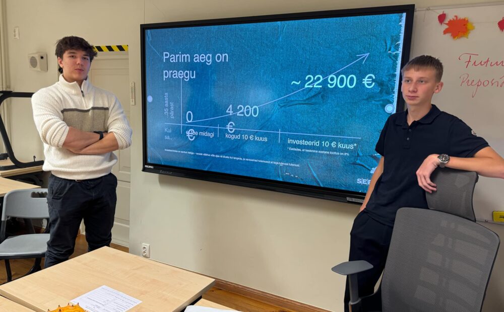 Johannes ja Hardi tutvustasid enda kogemusi ja teadmisi, mida nad olid omandanud Noorte Investeerimislaagri ning SEB Koolisaadiku programmist.