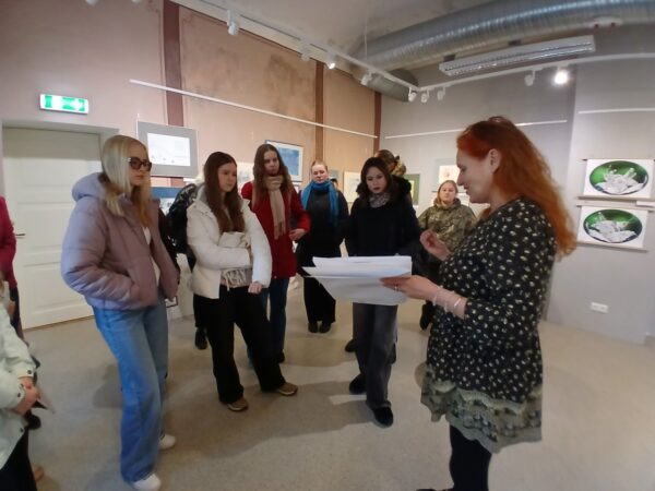 Tööde juhendaja Aide Leit-Lepmets tutvustas, kuidas sünnib üks maal: samm-sammult, katsetades ja otsides parimat tulemust. Selgus, et loomeprotsess ongi sarnane kirjutamisele: hea tulemuseni jõuab vaid pideva proovimise kaudu.