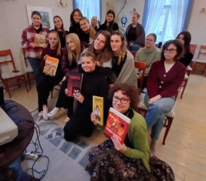 Tunni jooksul jagasid loovkirjutajad üksteisele lugemissoovitusi: igaüks oli kaasa võtnud mõne enda jaoks olulise raamatu ja tutvustas seda kaaslastele.