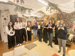 12.H klass käis kirjandusetunnis lasteraamatukogu jõulukambris, kus bibliograaf Krista Kumberg jutustas muinasjutte.
