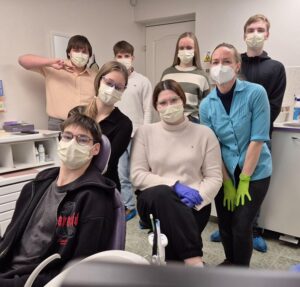 Dentistas võttis meid vastu hambaarst Klaarika Hõimra. Alustasime erinevate tubade, seadmete ja vahendite tutvumisega, mida hambaarstid igapäevaselt kasutavad. Saime küsida erinevaid küsimusi, teada erinevad karjäärivalikud stomatoloogia valdkonnas ning arutada, milliseid samme haridusteel on vaja teha selle karjääri jaoks. Tuur lõppes hambaarsti kabinetis, kus nägime röntgenpilte hammastest ning saime harjutada erinevaid protseduure nagu näiteks hambapesu. Lõpuks tegime rollimängu – valiti kolm õpilast, kellest said hambaarst, assistent ja klient. Nad panid kindad kätte, maskid ette ning juuksed kinni. Meie klassi hambaarst ja assistent hakkasid hambaid puhastama ning saime isegi teada, et meie klassivennal on tarkusehambad kasvanud. Visiidi lõppedes saime kaasa hambaharjad ja hambapastad.