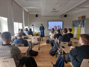 Peale seda tegeles õpilastega Angela Leppik INNOKAst. Tema selgitas õpilastele õpilasfirma olemust, tõi palju-palju näiteid erinevatest õpilasfirmadest ning nende tegevusest: alustamisraskustest, tootearendusest, müügitööst, kasumlikkusest jne. Õpilased said näha firmade tooteid ning nii mõnegi õpilase peas tekkisid ideed…